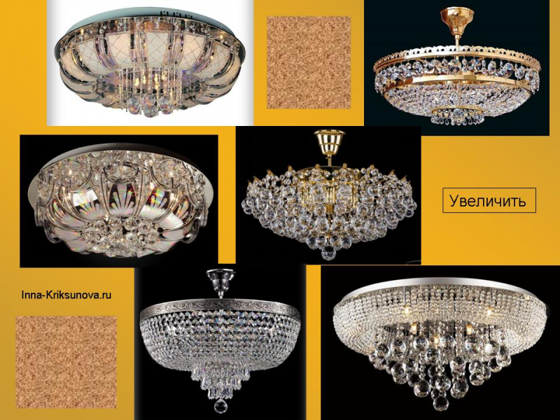 Для производства используются различные материалы, поэтому можно купить хрустальную люстру или подобрать оригинальный светильник из дерева. В идеале, чтобы все эти модели имелись в каталоге.