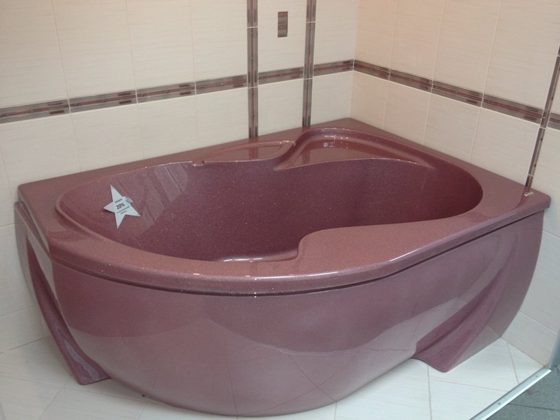 - Как и другие виды пластиков, акрил позволяет получить изделия любого цвета. Для этого ещё на стадии производства материала в него добавляют красители. Окрашивание в массе позволяет ванне после длительной эксплуатации не терять своей привлекательности, ведь даже глубокие царапины становятся незаметными. Если же повреждения будут намного существеннее, то можно легко восстановить первоначальное состояние поверхности, воспользовавшись стакриловой эмалью.