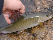 - Вблизи скал также можно встретить хариуса, учитывая, что корм для его пропитания находится в таких местах в изобилии. Заброс производится с лодки и в сторону берега. А уже после делаются броски вокруг плавсредства. И в том, и в другом случае проводка должна быть медленной с паузами.