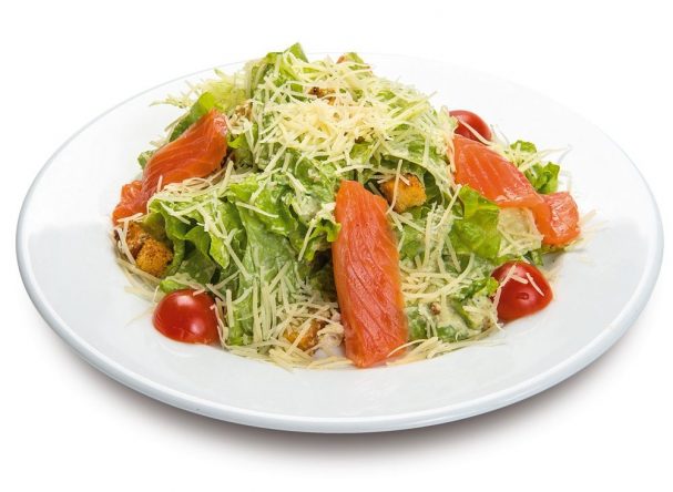 Салат «Цезарь» с красной рыбой Большинство хозяек готовит салат «Цезарь» с куриной грудкой, но она не является главным ингредиентом этой популярной закуски. Основными продуктами в ее составе считаются…