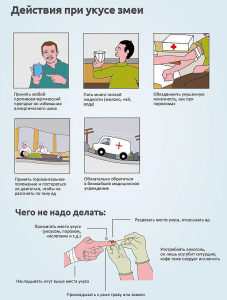 Первая помощь при укусе змеи Ядовитые змеи водятся повсеместно, тем не менее, контакт человека с ними случается достаточно редко. Еще реже змеи нападают на людей и кусают их,…