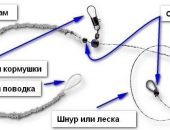 Для заброса кормушек весом до 100 граммов используется шок-лидер из лески с диаметром 0,22-0,25мм.