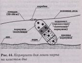 Кроме определения рельефа, важен также прикорм. Учитывая специфику (дистанцию) донной рыбалки, можно сделать вывод, что прикормки придется доставлять на внушительное расстояние.