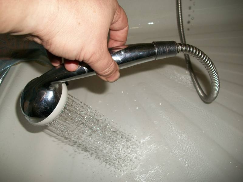 В нашем случае душевая лейка со шлангом осталась в растворе на ночь.