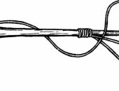 Леска доводится параллельно цевью до места впайки крючка в свинец, разворачивается, делается несколько оборотов вокруг цевья в нисходящем направлении