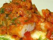 Ингредиенты: 700-800 г филе белой рыбы, 1 морковь, 1-2 луковицы, 3 помидора, 1 ч.л. сахара,