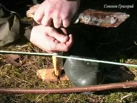 В качестве палки может сгодится сосновая. В ней делается расщеп, куда кладется трут. Но трут нужно класть таким образом, чтобы под палкой оставалось пространство. Веревка лучше, если будет из натуральных волокон.