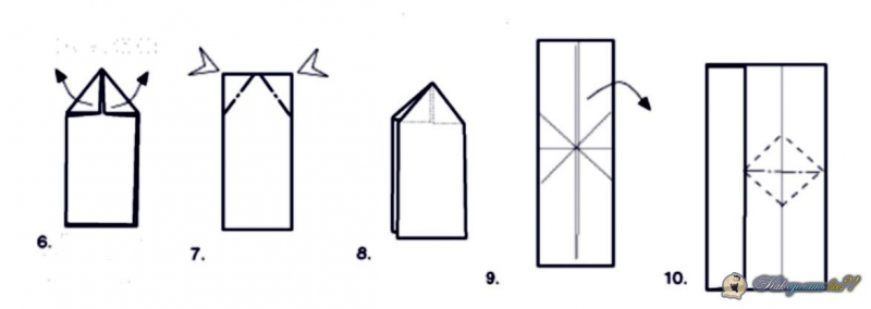 Каждый загиб сделайте несколько раз, старайтесь, чтобы он был красивым и ровным (можно использовать край металлической линейки). Теперь заготовим четыре складки долины вдоль четырех сторон алмаза.
