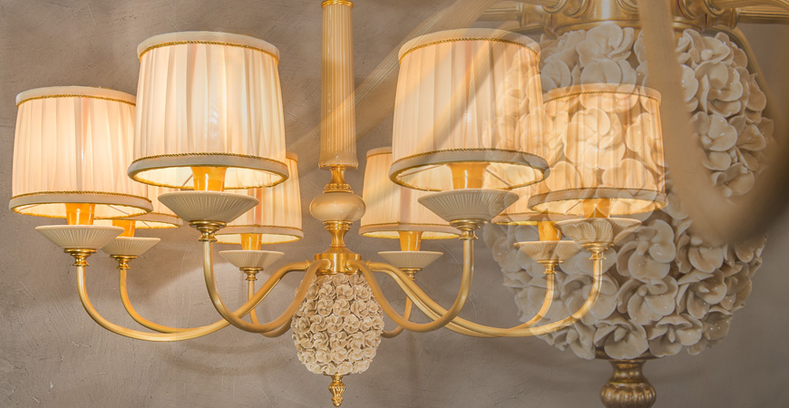 Помимо габаритов помещения обращают внимание на стиль оформления интерьера. Если это лаконичный интерьер в современном стиле, то подойдёт люстра из хрома или стекла, если утончённый романтичный стиль – из бронзы, фарфора, хрусталя. Люстра не должна выделяться, если только речь не идёт о стиле фьюжн, где намеренно перемешиваются сразу несколько направлений.