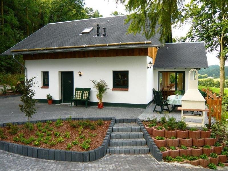 Что касается садика перед домом, он чаще всего декорируется гортензиями, статуэтками, физалисами и многими другими видами цветов, а то и деревьев.