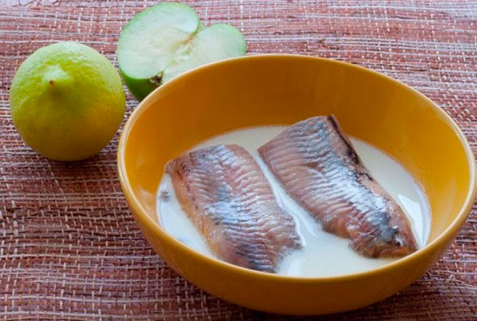 Для вымачивания рыбы хорошо подходит молоко, которое быстро удаляет излишки соли, уменьшает специфический рыбный вкус и запах, делает мясо вкусным и нежным. Процедура вымачивания в молоке длится не более четырех часов.