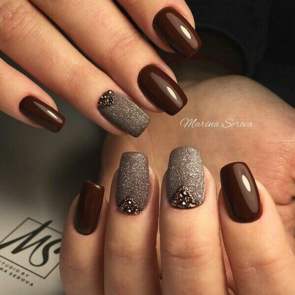 КОРИЧНЕВЫЙ МАНИКЮР С ДЕКОРОМ СТРАЗАМИ