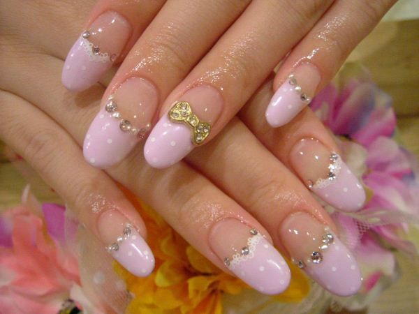 Розовый цвет ассоциируется с гламуром и кокетством. В этом случае вполне можно дать себе волю, прикрепив к ногтям много сверкающих камушков. Впрочем, и минимализм приветствуется.