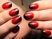 Отличным вариантом новогоднего маникюра под красное платье станут ногти с плавным цветовым переходом. Градиент сегодня на пике популярности. Да оно и понятно. Делается маникюр быстро, а выглядит стильно и нетривиально.