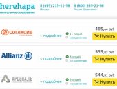 Затем жмем «Найти страховку» и попадаем на ассортимент страховых компаний: