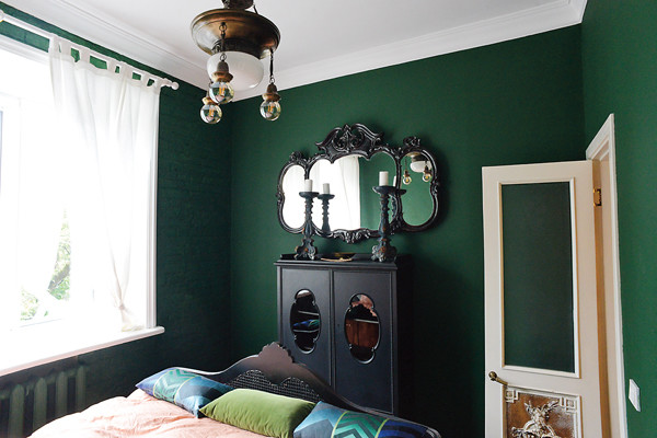 Так, в квартире Ильяшенко стены украшены чугунной плиткой 19 века, на кухне гарнитур собран из старинного деревенского комода, найденного в Рыбинске, в спальне висит шикарное антикварное зеркало с ажурной рамой. На кухонной полке, сделанной из частей рыбинского комода, стоят бутылка, сделанная еще в Российской Империи, и бульотка – посуда с горелкой, предназначенная для разогревания бульона. Кровать Лукерья хотела тоже старинную, но пришлось приобрести современную, так как формат старой спальной мебели таков, что под нее невозможно подобрать матрас.
