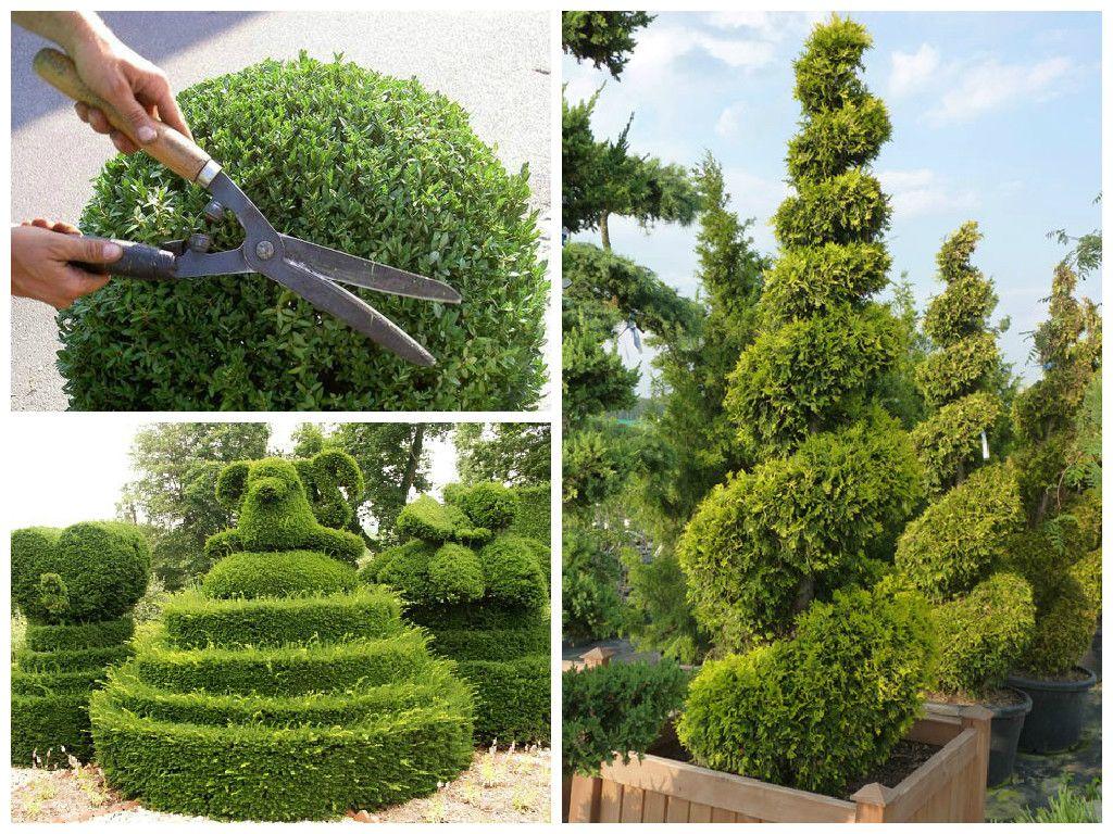 При топиарной обрезке кроне придается нестандартная форма. Для этого могут использоваться специальные каркасы в форме разных скульптур.