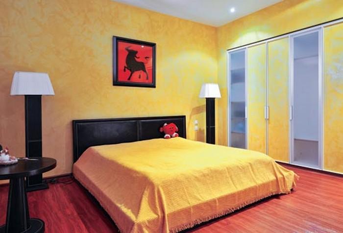 Писательнице нравится открытое пространство. На первом этаже от посторонних глаз отгорожена лишь комната для гостей в желто-горчичном цвете и санузел. Остальную территорию занимает кухня-столовая и гостиная. Стены гостевого этажа выкрашены в ярко-красный цвет специальной венецианской краской. Это вид декоративной штукатурки, которые использовали зодчие для отделки дворцов еще в древние времена. Поверхность стен напоминает дорогой мрамор и выглядит очень изыскано.