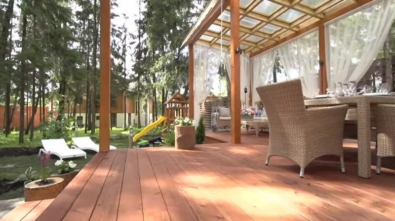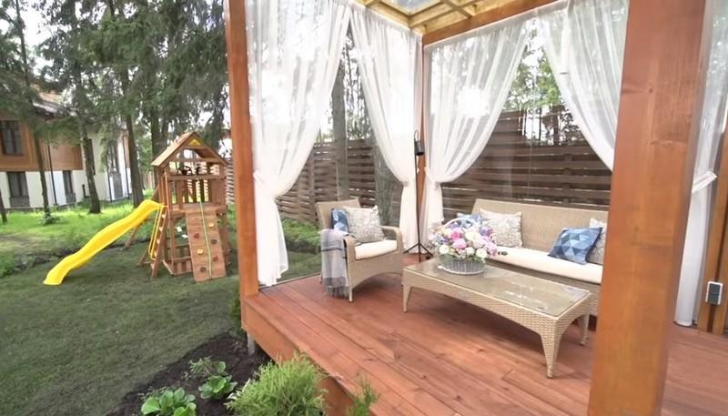 Дом Агнии Дитковските и её семьи – брата Доминика и мамы Татьяны – расположился в посёлке Петрово-Дальнее. Участок вокруг – тёплый, нежный и уютный. Много деревьев, благодаря которым летом дом утопает в зелени, несмотря на свои приличные размеры. В доме три этажа. Расцветку снаружи можно назвать классической: первый этаж белый, а остальное – стены, крыша – имеет отделку под цвет дерева. Спокойный неброский и стильный дом.