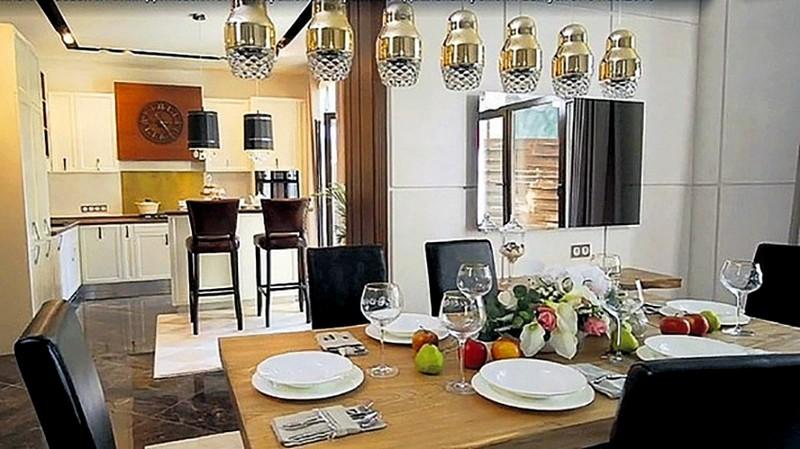 В итоге дом получился изысканным, стильным, наполненным и душевным. Камин, необычные люстры, стулья на высоких тонких ножках, мягкие широкие диваны и уютные спальни – то, что помогает членам семьи Агнии Дитковските отдохнуть после напряжённого трудового дня.
