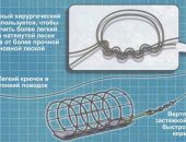 - «Вертолет и два узла» применяется для лова карпа на дальних расстояниях. Приспособление крепится к основной леске по меньшему плечу;