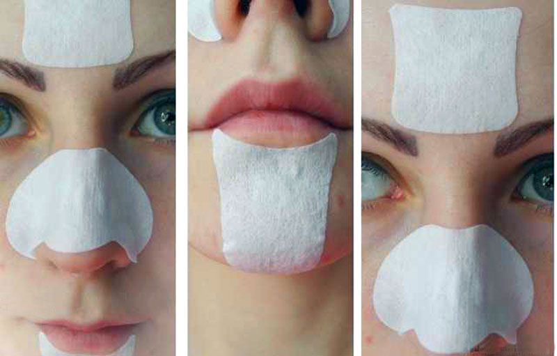 Пластыри можно наносить не только на спинку и крылья носа, но и на любой другой участок лица.