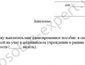 Начиная со 180 дня беременности, женщина имеет право обратиться за получением пособия единовременного характера. До того, как родится ребенок, брак должен быть зарегистрированным. Работнику органов соцзащиты предоставляется документ от врача-гинеколога о сроке беременности.