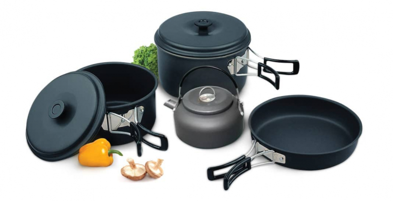 Ну а если вы отправляетесь в путешествие с группой, тогда лучше купить сразу набор посуды, что рассчитан на несколько персон. В таких наборах часто имеется несколько кастрюль, которые вкладываются одна в одну. Таким образом, у вас получится сэкономить также место.