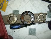 В отверстие с резьбой фиксируем подшипник с помощью болта. Пластины закрепляем на шпильки, в отверстия для рукоятки УШМ.