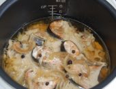Рыбку следует отварить. Обжариваем лук полу колечками. Накрываем томат луком с маслом, которое использовали для жарки лука.