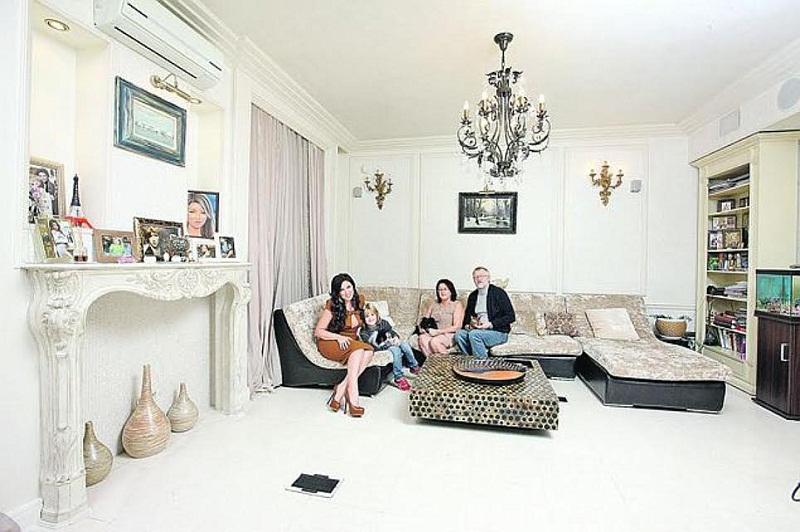 Просторные четырехкомнатные апартаменты певицы расположены в столице в районе Воробьевых гор. Французский и восточный стиль – главные направления оформления комнат. Стены всех помещений, за исключением ванны, выкрашены в белый или светло-бежевый цвет.
