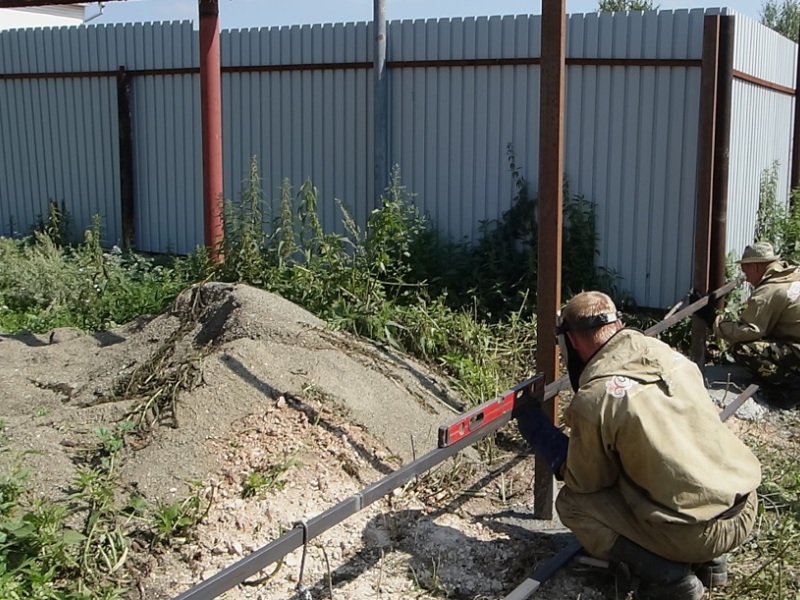 Я уже установил забор, осталось пришить профнастил, я использовал оцинкованный профнастил С-8 . Это идеальный вариант для забора, дешевый и прочный, толщина металла 0.45 мм, этого достаточно.