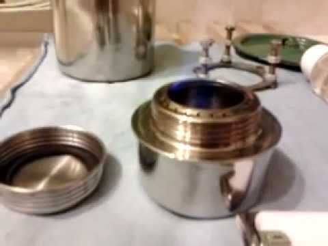 В заполненном виде спиртовка весит около 210 грамм, наполняется техническим спиртом до половины (предельное заполнение по нормам безопасности). Метиловый спирт в подобных горелках использовать нельзя, т.к. его пары опасны для здоровья.