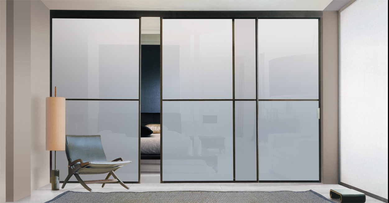 Изделия с матовыми стеклами используются в помещениях, интерьер которых оформлен в сдержанном стиле, для создания уюта. Такой дизайн подходит к любому интерьеру, непрозрачное стекло пропускает свет, но видимость будет ограниченной.