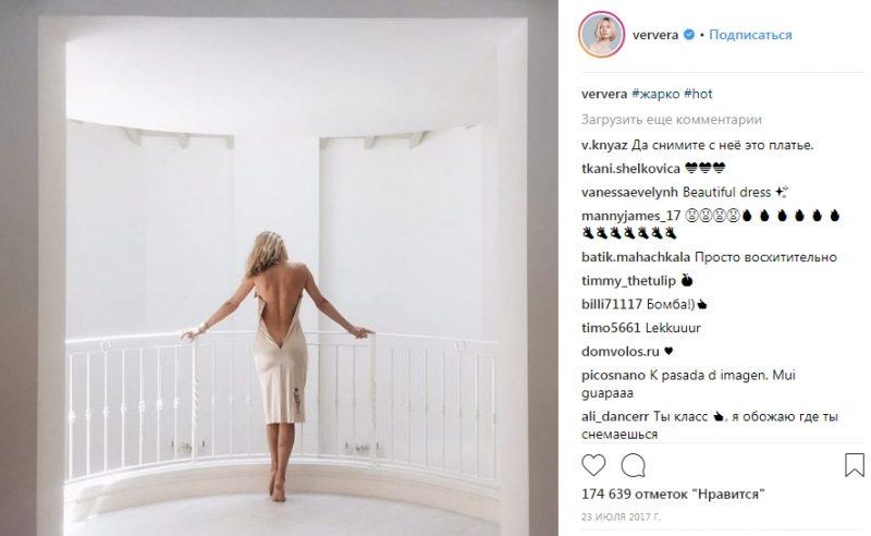 Дом в два этажа. Передний фасад украшен колоннами и террасой. К особняку прилегает гараж на две машины. Задний фасад также украшен колоннами и большим застекленным эркером. Так как поселок элитный, в соседях у Веры одни известные личности, например, Валерий Меладзе.