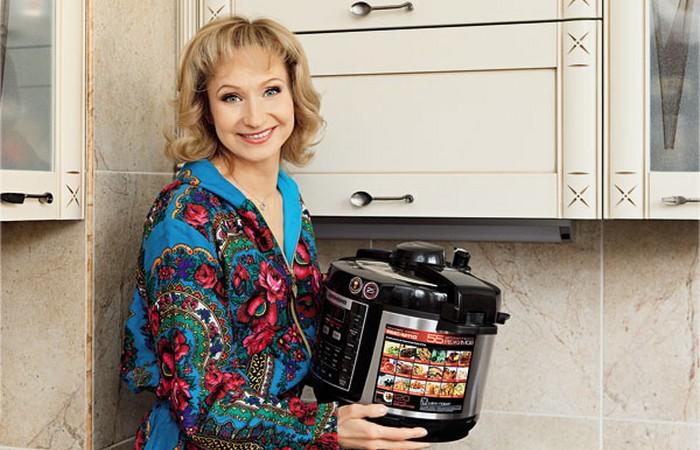 Прокофьева умеет и любит готовить. Кухня — любимое место, где у настоящей хозяйки всё под рукой благодаря элегантному гарнитуру цвета топлёного молока. У отечественной кухни есть маленькие секреты. Декор в виде картины «Натюрморт с гранатом» — по совместительству дверца шкафчика с кухонной утварью.