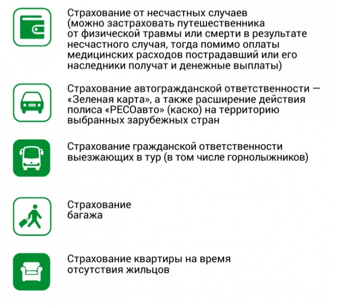 Отличие от медицинской страховки в том, что эти виды являются добровольными. Оформлять их необязательно, но вместе с тем они предоставляют больше возможностей за рубежом, что обеспечивает высокую степень комфорта во время отдыха за границей.