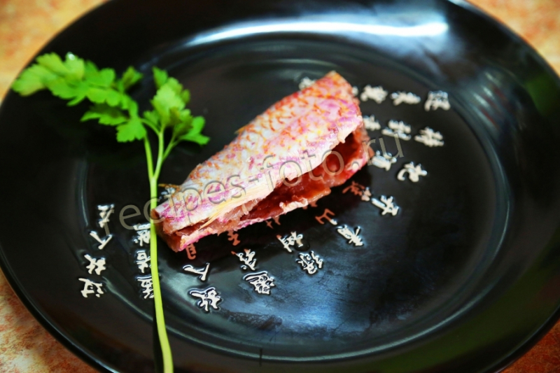 А после того как рыбка приготовилась ,подавать можно с любыми заправками моя любимая:Лимонная цедра — 1/2 чл,лимонный сок — 1стл, сахар 1/2 чл, перец свеже — молотый 1/2чл,масло оливковое — 3стл, коньяк -2стл и специи те которые вы любите.