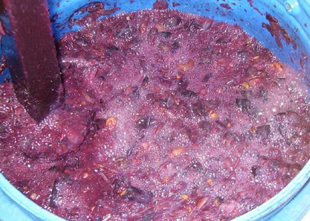 Если комнатная температура будет выше 20 градусов, то пострадает качество продукта, исчезнет особенный аромат. В течение всего брожения брага должна булькать с пузырьками, а мезга (раздавленные ягоды) – всплывать наружу.