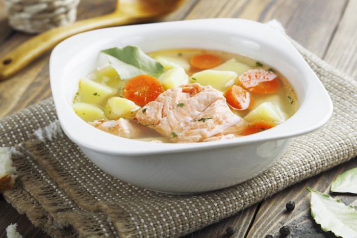 Не только в России готовят вкусную уху. В Финляндии тоже очень любят этот суп, но готовят его немного по-другому. Получается сливочный суп с нежными кусочками лососины. Вместо сливок можно использовать молоко.